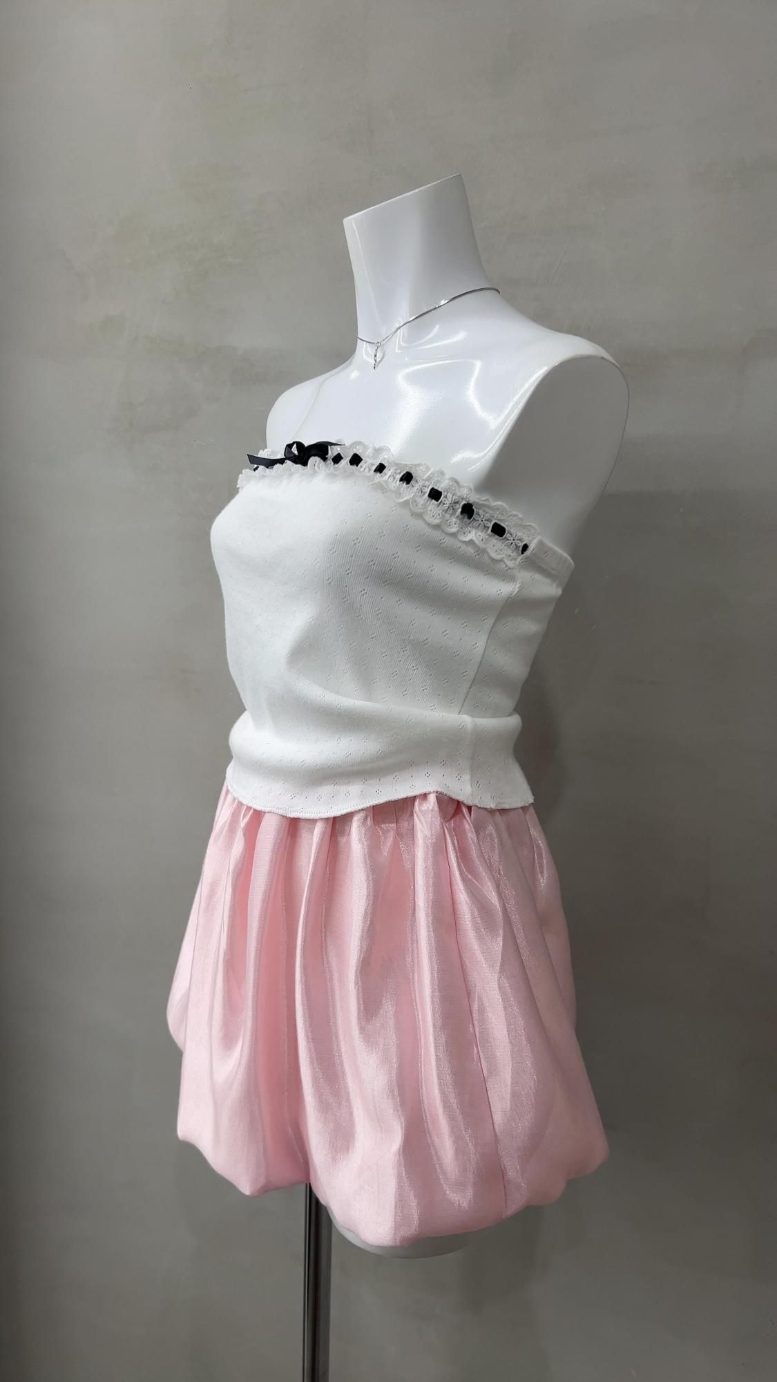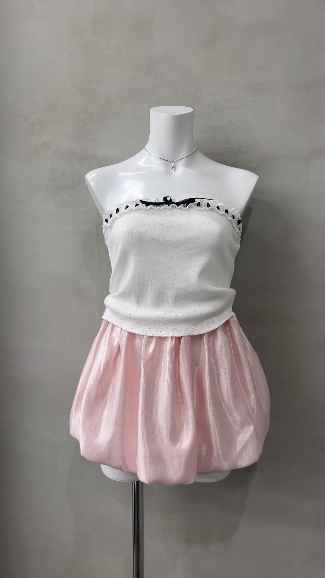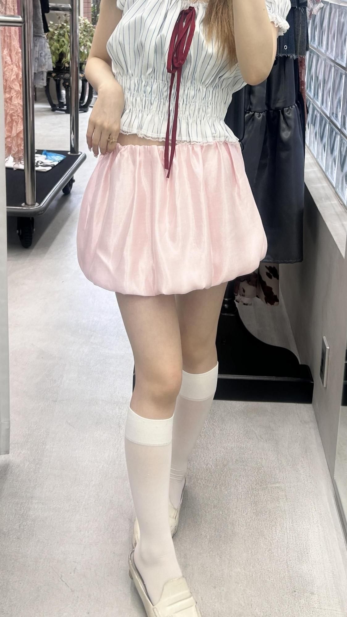 satin balloon skirt/pink
