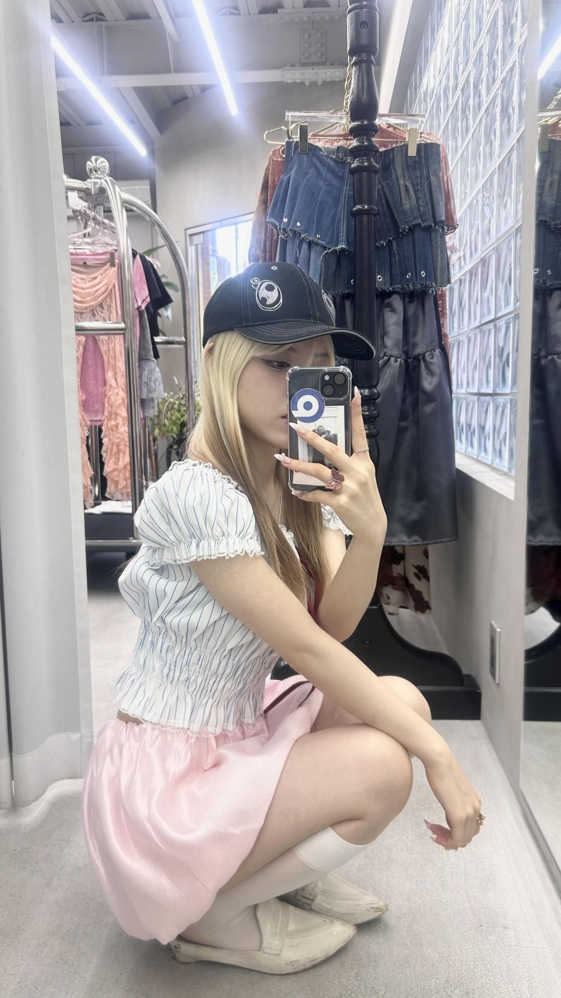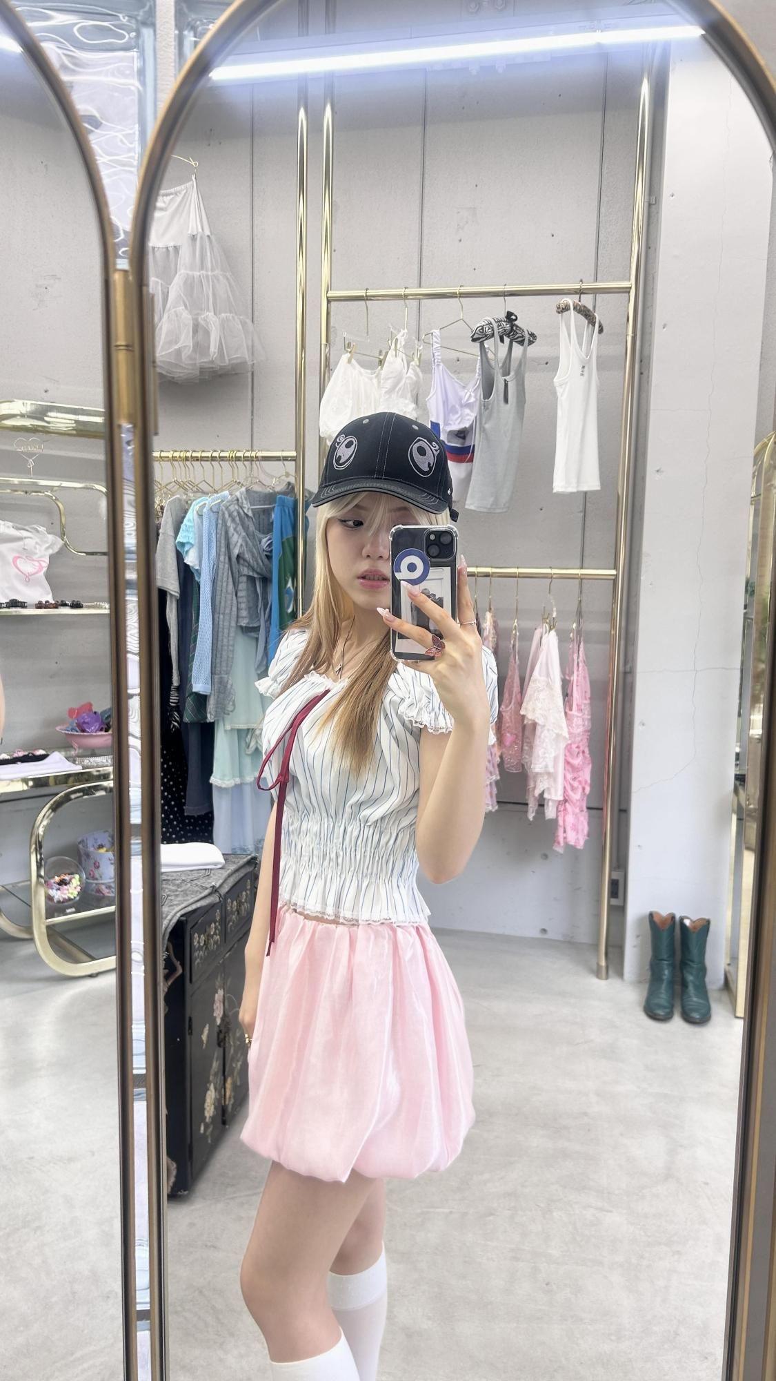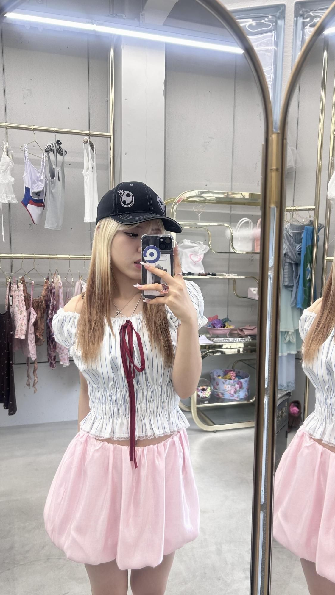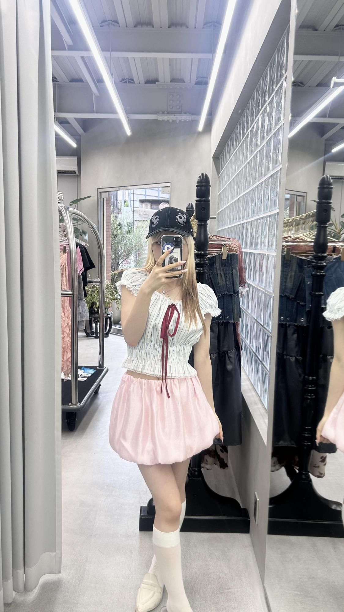 satin balloon skirt/pink